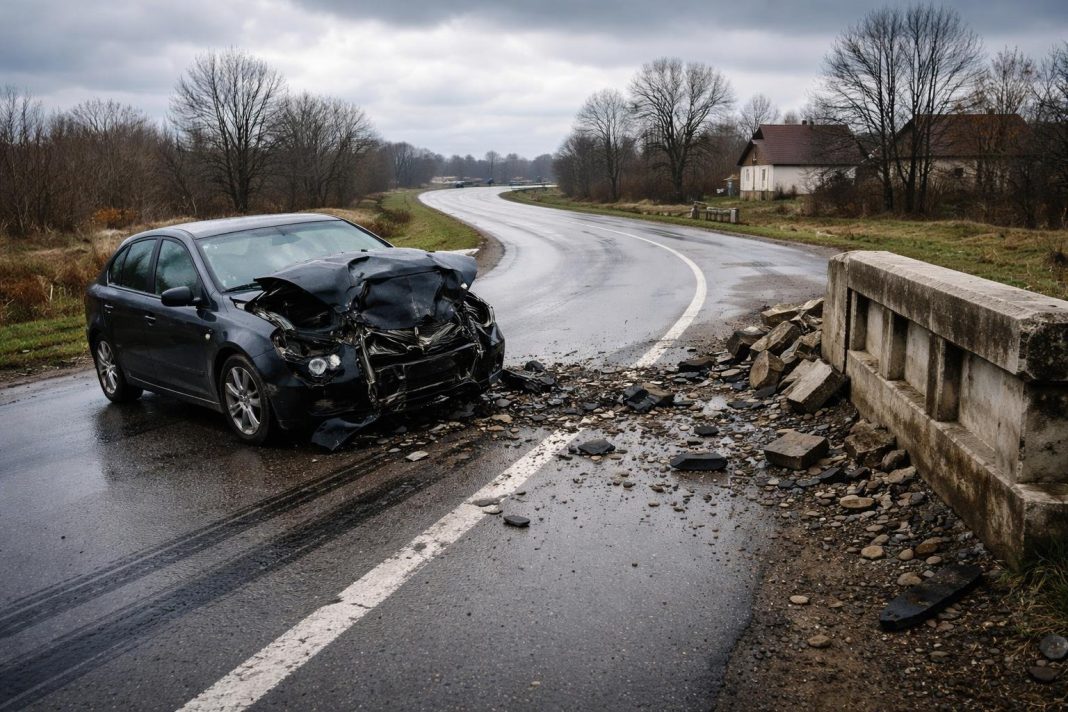 Samuel C., 23 de ani, cu permis suspendat, intră într-un cap de pod în Brodina